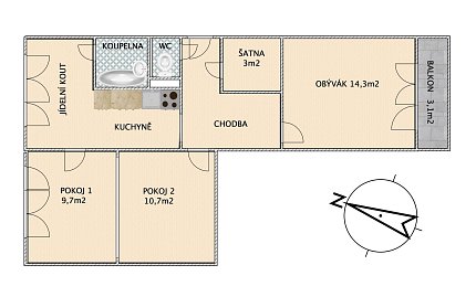 Prodej bytu 2+1 49 m², Sídliště Plešivec, Český Krumlov-Plešivec