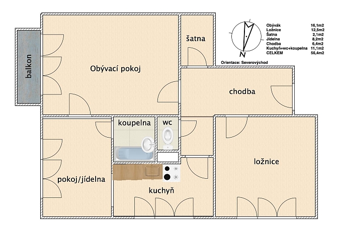 Prodej bytu 3+1 56 m², Budivojova, České Budějovice-České Budějovice 3