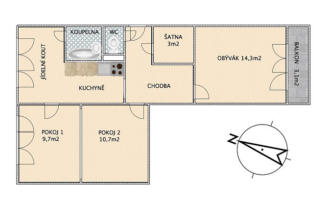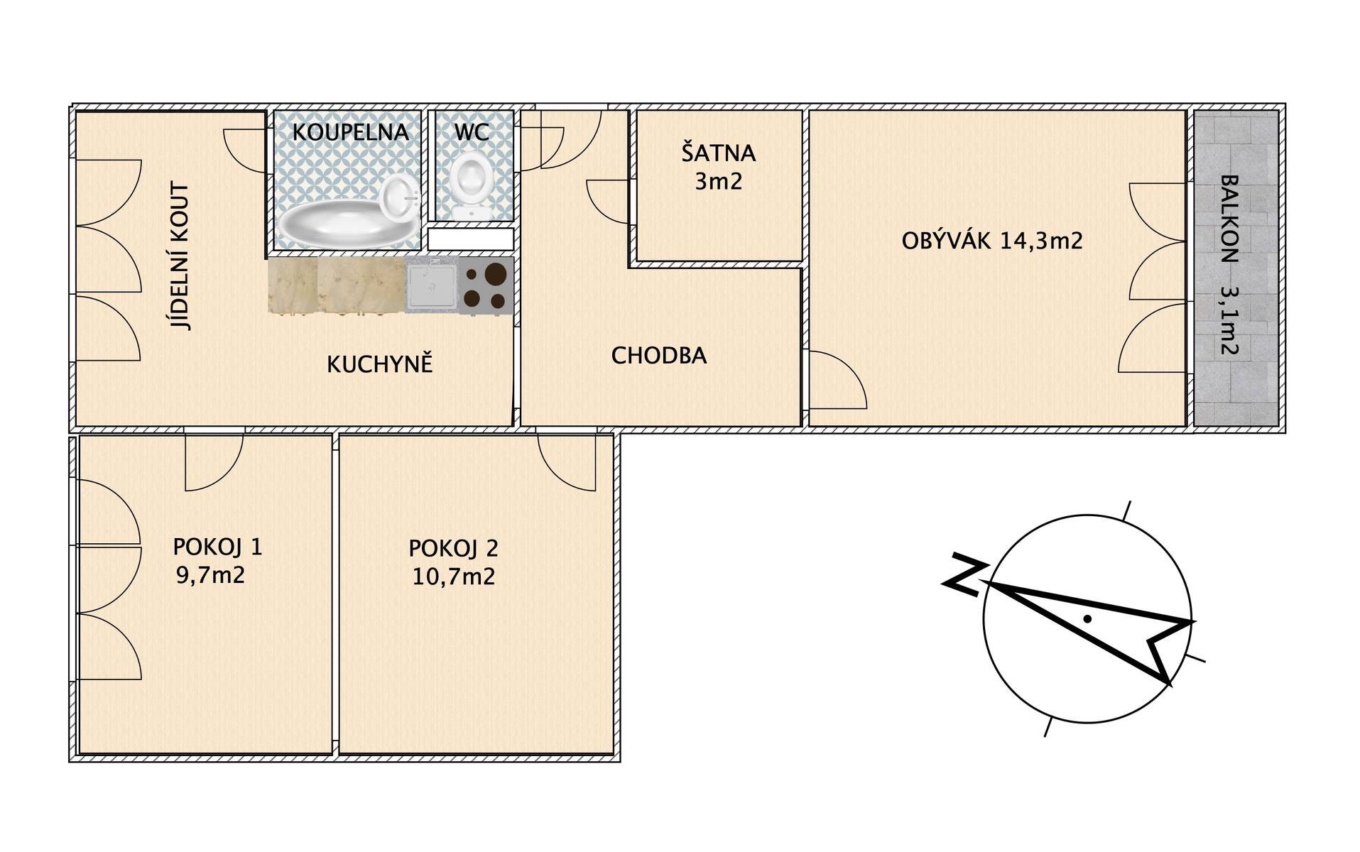 Prodej bytu 3+1 61 m², Špičák, Český Krumlov-Latrán