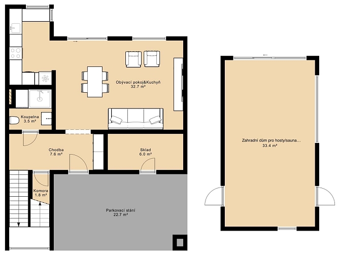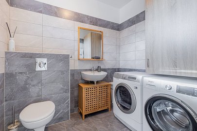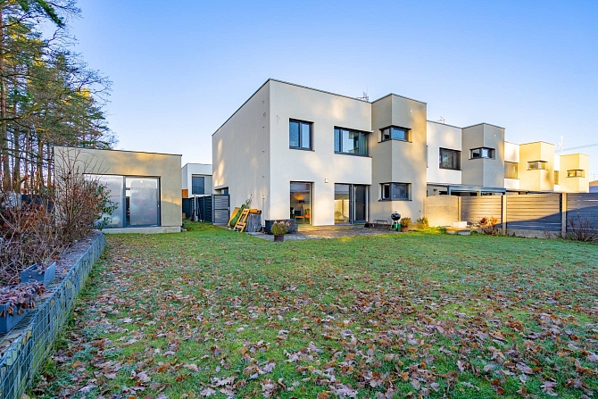Hledáte místo, kde se propojuje klid přírody s komfortem moderního bydlení? Tento rohový řadový rodinný dům v ulici Vrbová v oblíbené obci Srubec vám nabídne přesně to, co od kvalitního rodinného života očekáváte. Jedná se o moderní novostavbu o dispozici 5+kk, situovanou v klidné a architektonicky sjednocené ulici nových rodinných domů. Zcela zásadní a dnes velmi vzácnou výhodou je přímé sousedství s lesem, které zajišťuje maximální soukromí, krásné výhledy a každodenní kontakt s přírodou – ideální prostředí pro relaxaci, sport i rodinné procházky. Celková podlahová plocha nemovitosti činí 163,2 m², přičemž tato výměra již zahrnuje i samostatný zahradní domek o velikosti 34,2 m². Tento oddělený objekt nabízí široké možnosti využití – může sloužit jako dům pro hosty, ateliér, domácí kancelář, studio či prostor pro podnikání. Díky tomu získáváte nejen hlavní obytný dům, ale i plnohodnotný doplňkový prostor s velkou mírou flexibility. Dispozice domu je prakticky řešena a nabízí dostatek prostoru i soukromí pro větší rodinu. Součástí jsou dvě koupelny, což výrazně zvyšuje komfort každodenního bydlení – jedna koupelna se nachází v přízemí, druhá v horním patře. Dům je kompletně zařízený a připravený k okamžitému nastěhování. Velkým benefitem je také moderní a úsporný způsob vytápění i ohřevu vody pomocí tepelného čerpadla, které zajišťuje nízké provozní náklady a energeticky efektivní provoz domu. K dispozici je zahrada o čisté výměře 500 m², která poskytuje dostatek prostoru pro rodinné aktivity, odpočinek i zahradničení. Díky rohové poloze domu si zde užijete výrazně více soukromí než u běžné řadové zástavby. K domu náleží dvě parkovací stání přímo před domem, dále zvenku přístupný uzamykatelný sklad, ideální pro kola, sportovní vybavení či zahradní techniku. Další jedinečnou výhodou této nemovitosti je vjezd na pozemek skrze pojízdnou posuvnou bránu, což je u řadových domů zcela výjimečné řešení a výrazně zvyšuje komfort i bezpečnost bydlení. Obec Srubec patří dlouhodobě mezi nejžádanější lokality v blízkosti Českých Budějovic. Nabízí klidné rezidenční bydlení, kompletní občanskou vybavenost, výbornou dostupnost do města a zároveň bezprostřední blízkost přírody. Tento dům je ideální volbou pro rodinu, která hledá moderní bydlení v zeleni, s dostatkem prostoru, soukromí a nadstandardních prvků. Pro komunikaci uvádějte evidenční číslo zakázky N115728.